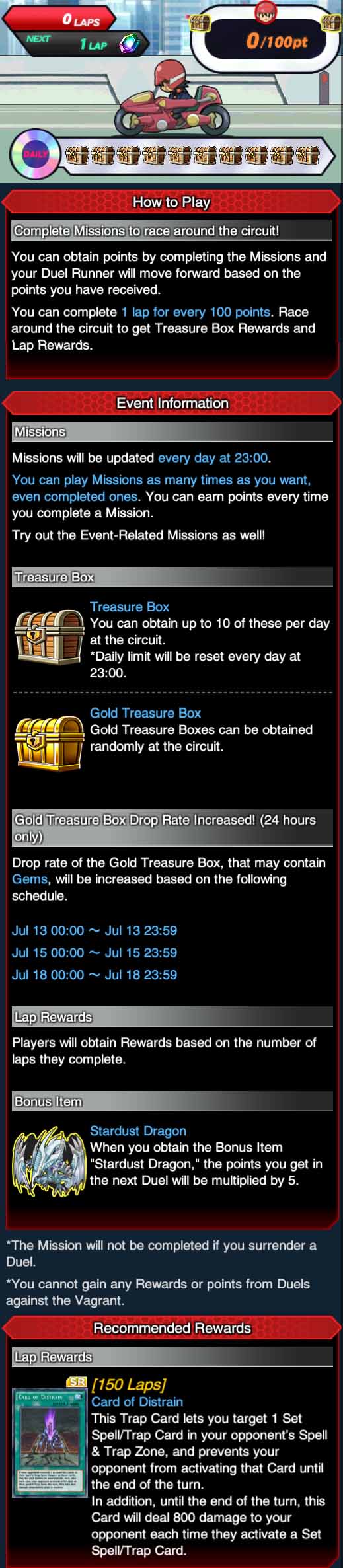 - Complete 1 Lap for every 100 Points. Obtain Treasure Boxes and Lap Rewards