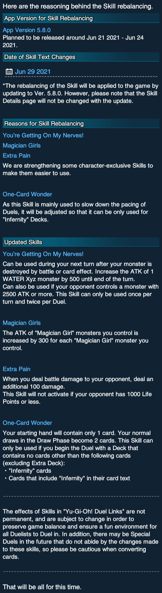 The Skill Changes will go into effect by updating to 5.8.0, which will be released around Jun 21st - 24th.